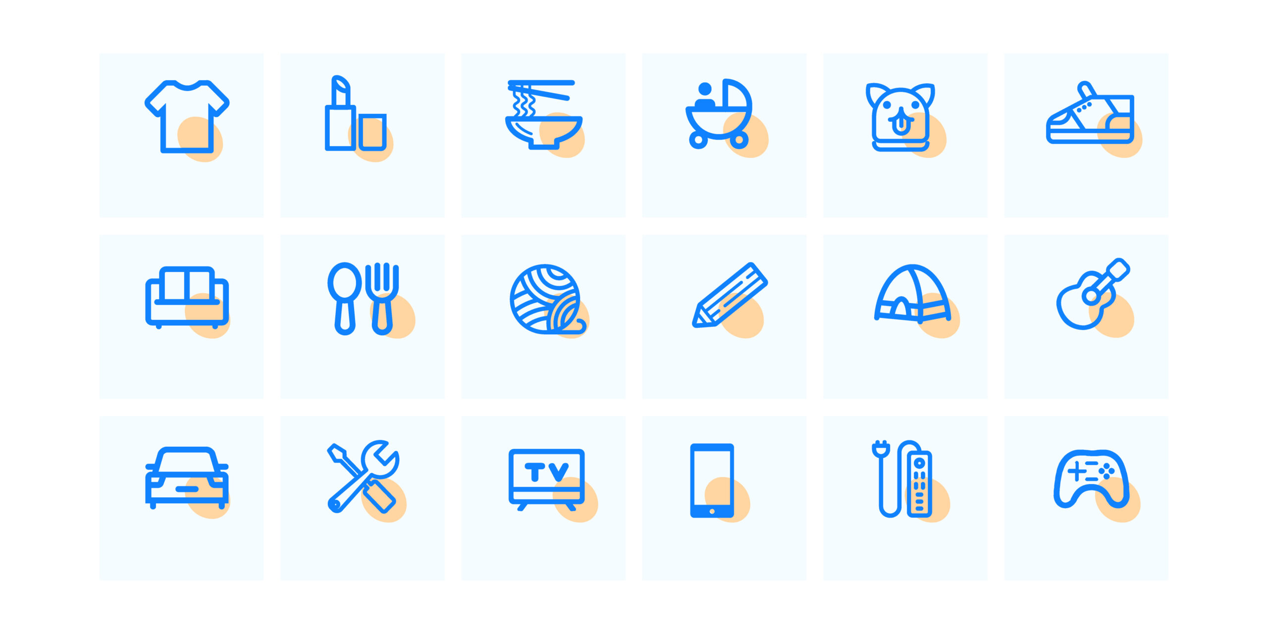 アパレル・コスメ美容・食品・キッズ用品・ペット用品・スポーツ用品・家具インテリア・キッチン用品・手芸用品・文房具・オフィス用品・アウトドア・楽器音響機器・カー・バイク用品・DIY工具・家電・スマホ関連・PCスマホ周辺機器・ゲーム周辺機器等々